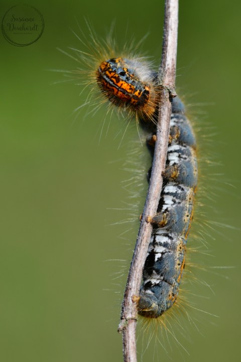 Während der Tour letzte Woche konnte ich gleich drei dieser bunten, großen Raupen im Gras entdecken.