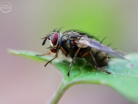 Ursprünglich wollte ich den Sauerklee fotografieren, da fiel mir die „hübsche“ Fliege auf, die nur 20cm vor mir auf einem Blatt saß.