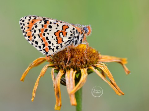 Schade, dass es an diesem Julimorgen bedeckt war. Der kleine geschützte Schmetterling war ebenfalls mit Tropfen bedeckt. Ganz klar: Als ich den Heimweg angetreten hatte, kam die Sonne raus…