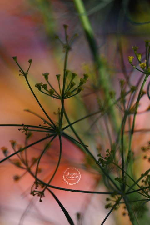Die letzten Sonnenstrahlen auf dem Balkon ausgenutzt und den Dill vor einer bunten Tischdecke fotografiert.