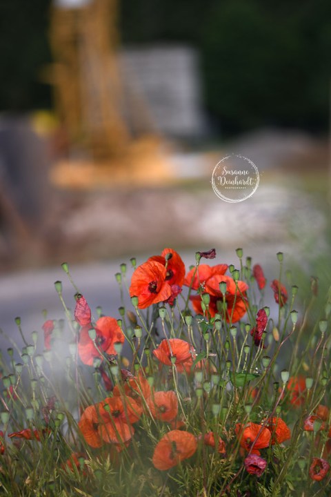 Im nahen Neubaugebiet gibt es momentan Unmengen von Klatschmohn. Leider sind die gefräßigen Bagger nicht mehr weit…