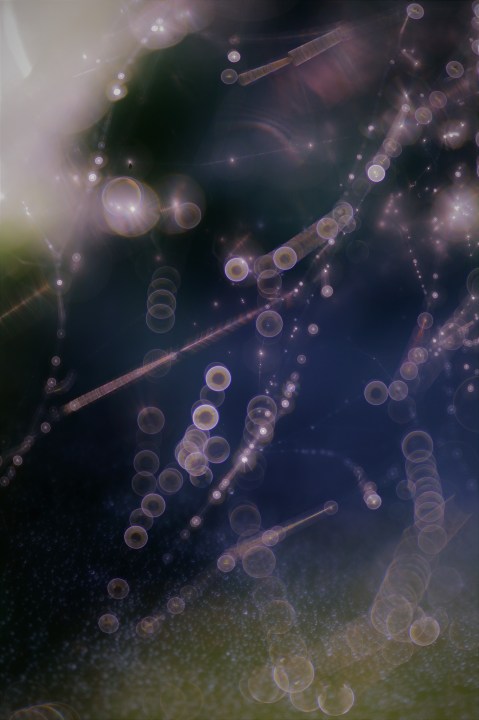 Wie ein wunderschöner Schatz in der Sonne: Wassertropfen auf einem Spinnennetz.