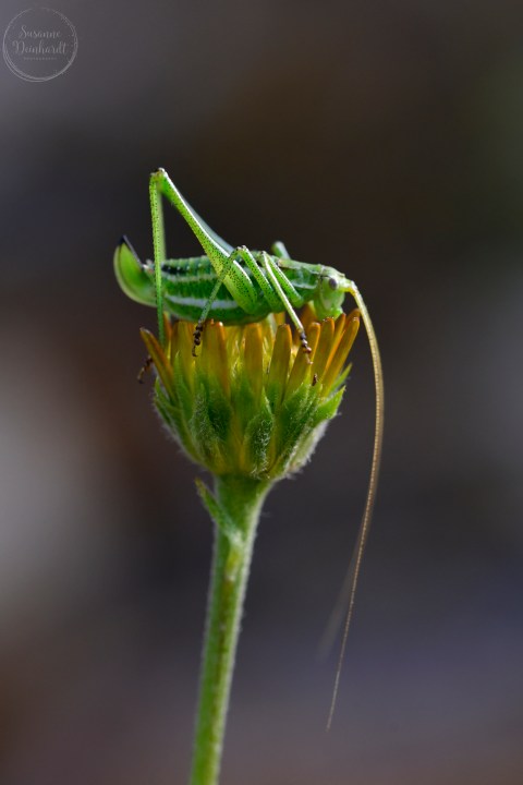 Ich fotografiere ja gerne Tiere im Detail, aber diese Heuschrecke hatte dermaßen lange Fühler, die mussten einfach mit aufs Bild.