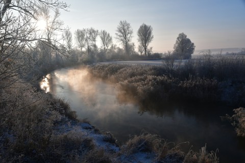 Wie schön die Weiden aussehen, wenn sie voller Rauhreif sind!
